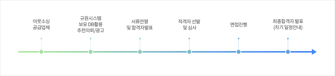 채용대행서비스란 병원 및 일반 기업체의 채용과 관련된 입사지원서 접수에서 인재선발까지 전 과정을 대행하여, 고객사의 시간/비용절감 및 경쟁력 향상에 도움이 되고자 시행하는 시스템을 말합니다.